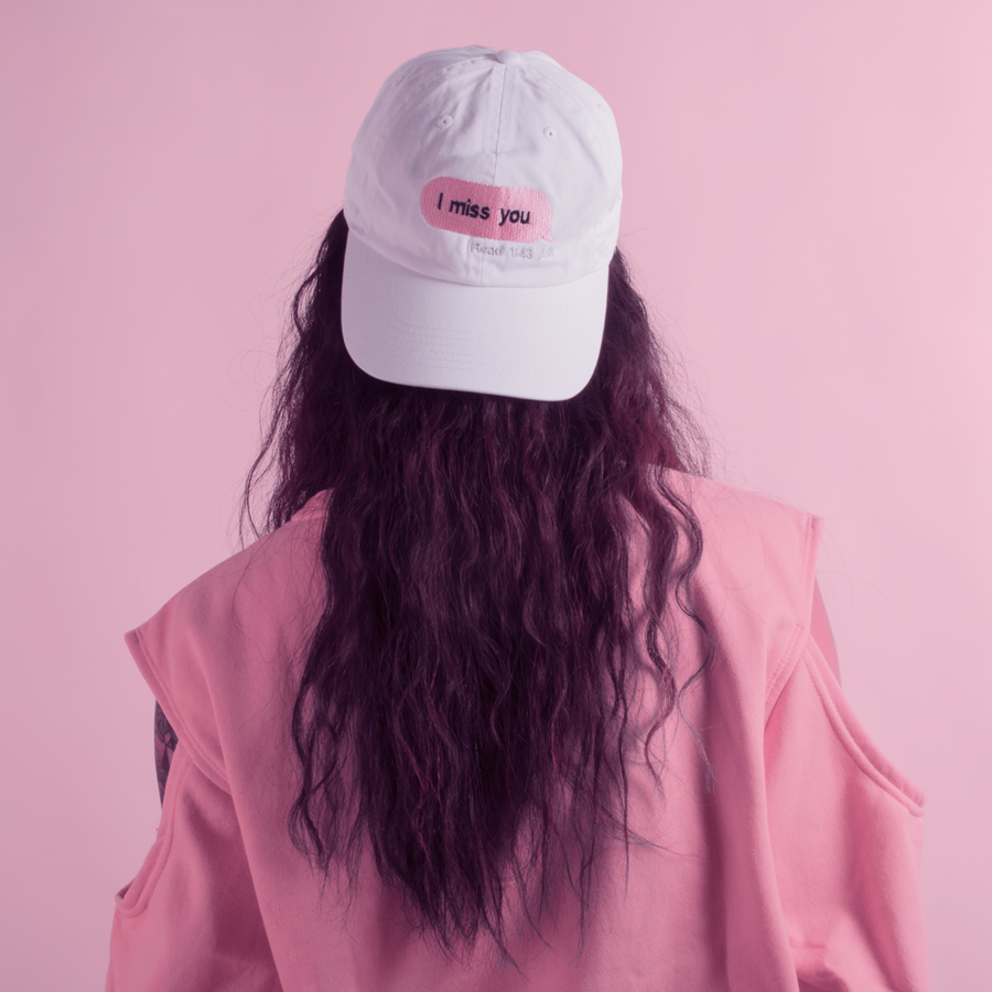 I MISS YOU HAT WHITE-PINK LOGO