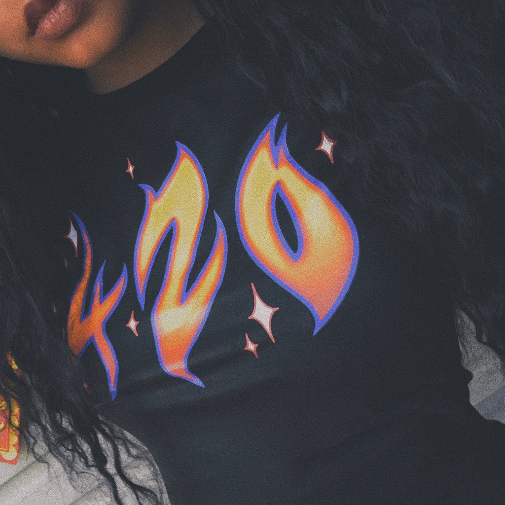 HAPPY 420 CROP TEE BLACK - MJN ORIGINALS